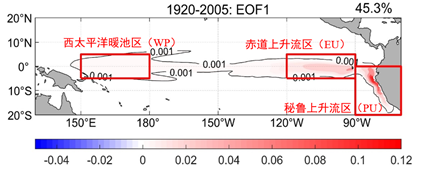 图1 历史情景下热带太平洋叶绿素异常的EOF主模态。