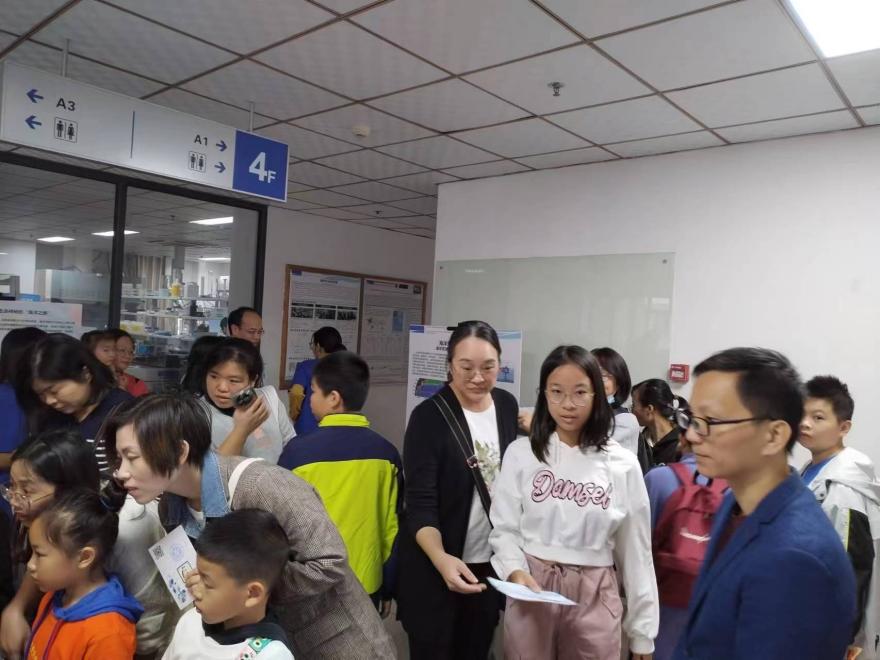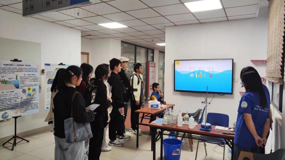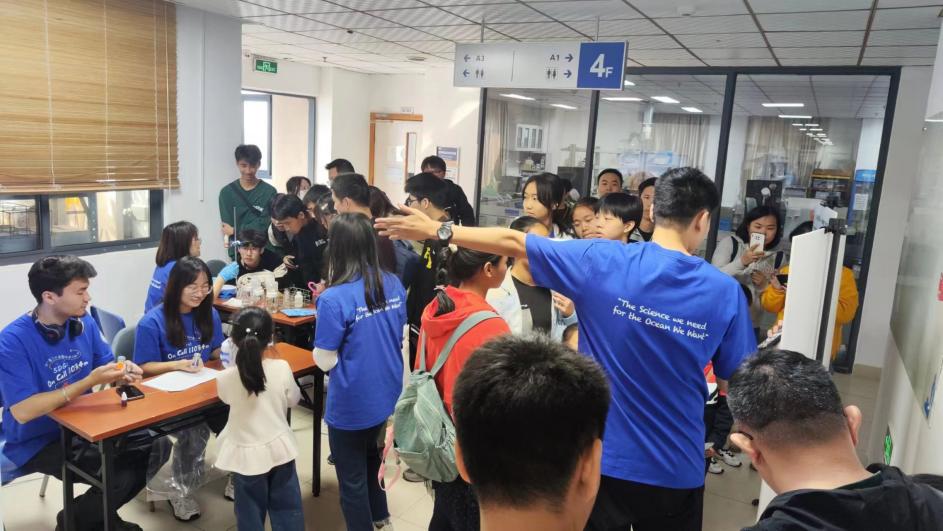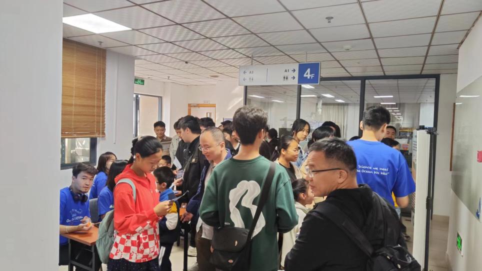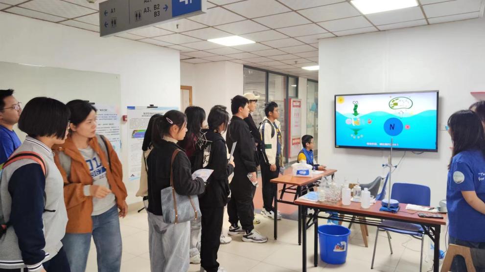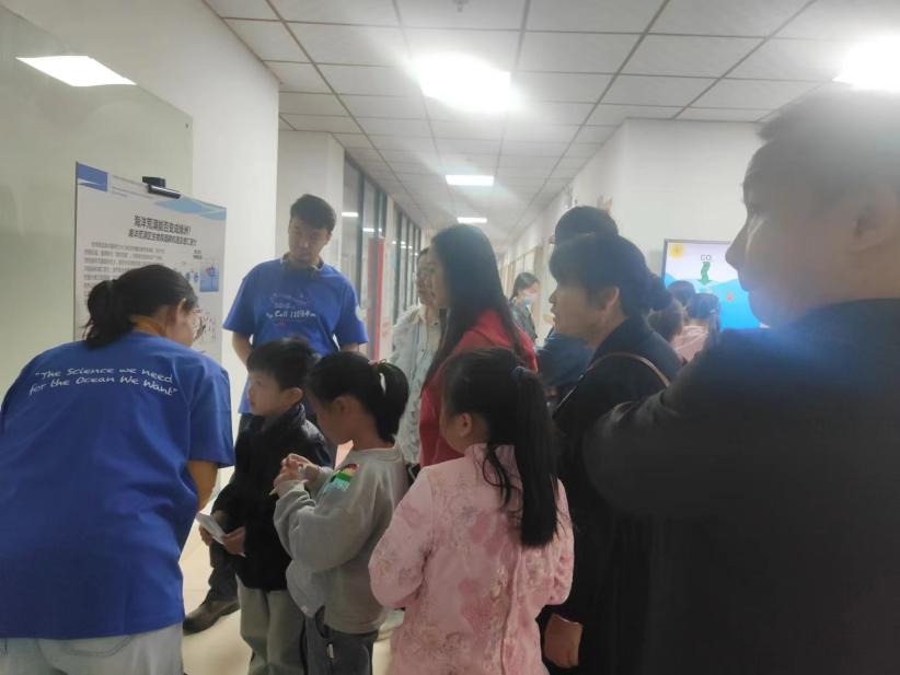 海洋科学开放日当天,设置在厦大翔安校区周隆泉楼内的“海洋碳汇知多少”互动展位吸引了众多大小朋友们驻足观看,科普展位处人头攒动。