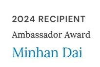 AGU成立于1919年,是全球规模最大、最具影响力的地球与空间科学家的学术组织,拥有 6 万余名会员,他们来自 135 个国家,涵盖大气和海洋科学、固体地球科学、水文学、空间科学、行星科学等诸多领域。AGU 会士是该组织授予会员的一项荣誉称号,每年推选不超过成员总数0.1%的会员成为会士,以表彰在国际地球与空间科学领域具有远见卓识、在科学研究中取得卓越成就的科学家。此外,AGU于2013年设立大使奖,旨在表彰在科学研究、人才培养和国际合作等方面贡献卓著且具有卓越领导力的杰出个人。获奖者通常对地球和空间科学的发展做出了超越自身研究领域的贡献,并具有广泛的社会影响力。