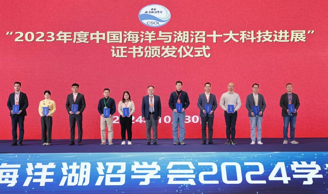 王为磊(左三)获“2023年度中国海洋与湖沼十大科技进展”